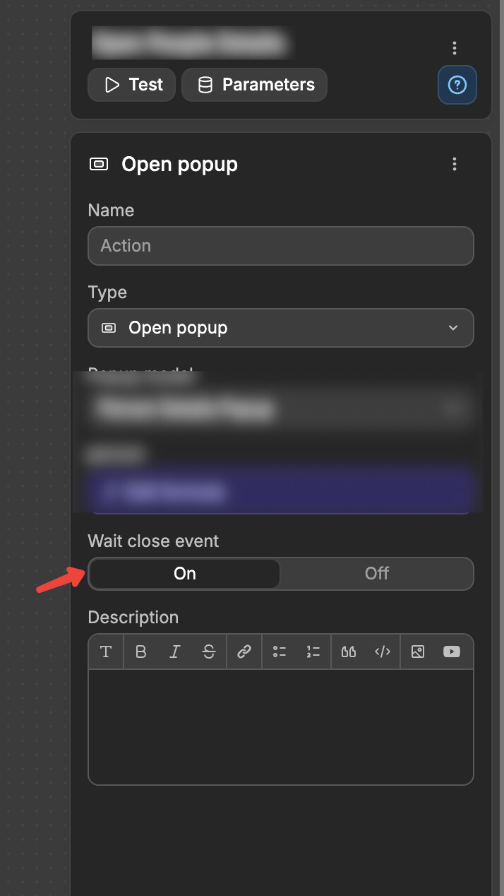 Can we have a custom mapping value for the wait close event since we use the popus in the global actions and we need to define to wait or not