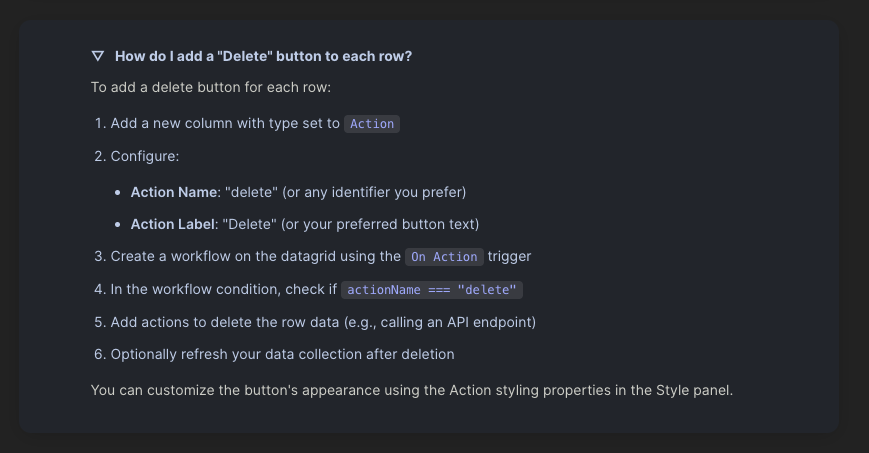 When you allow editing for a cell it means the user will be able to double click it and write or erase the content driectly, you won’t have a pencil or bin icon.