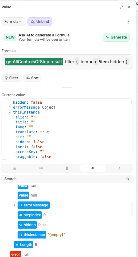 Also: Why isn’t the thisInstance.hidden property true, when thisInstance.style.display == “none”? I would have expected that the display property determines the value of the hidden property (at least partly, as we also have the conditional rendering feature).