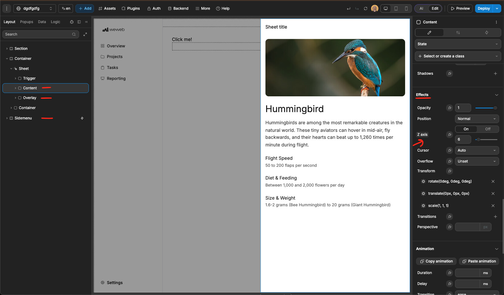 This seems to be an issue with the Z-Axis, which is a configuration that creates “verticality“ between elements, meaning, you can choose which element gets on top of each other.
